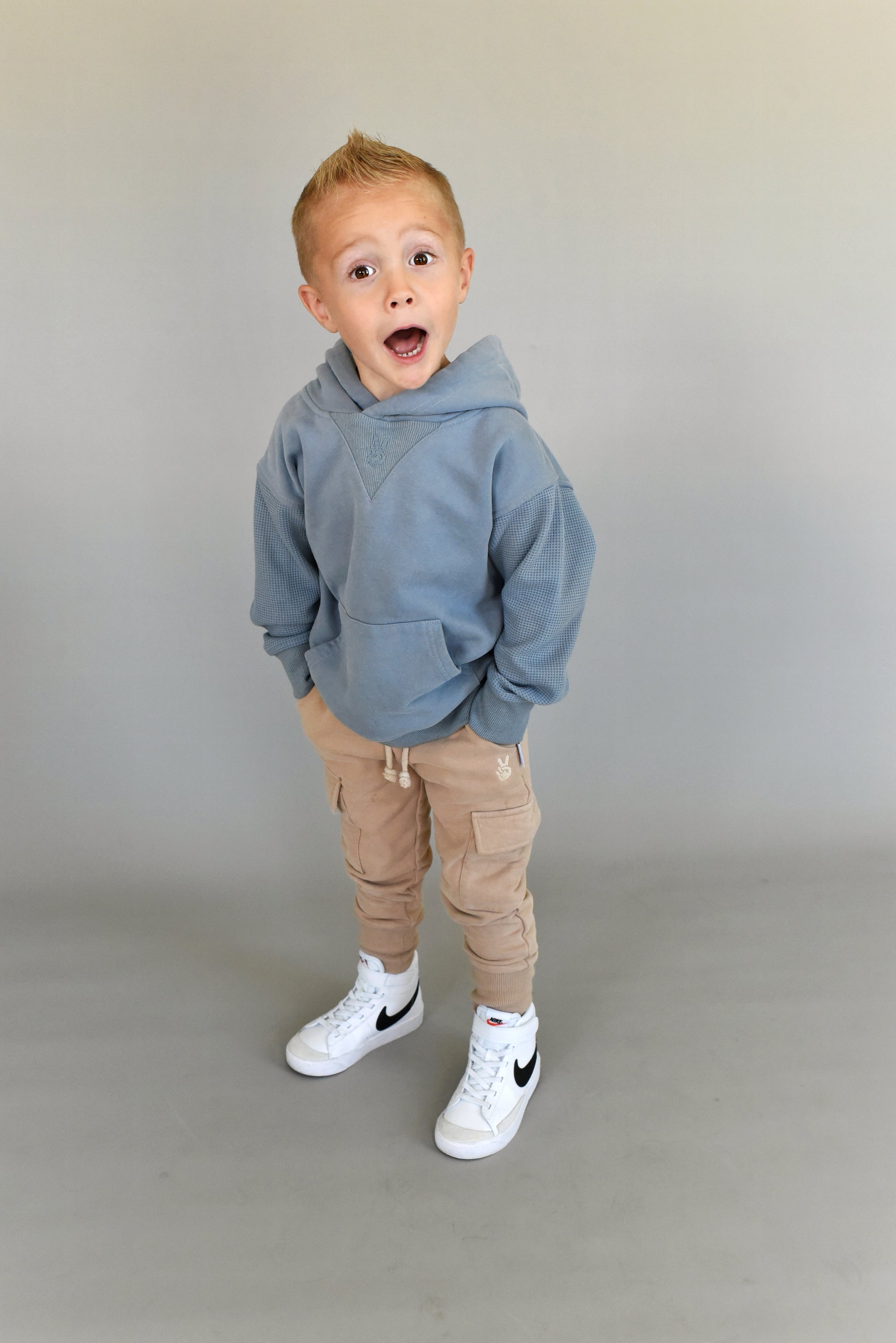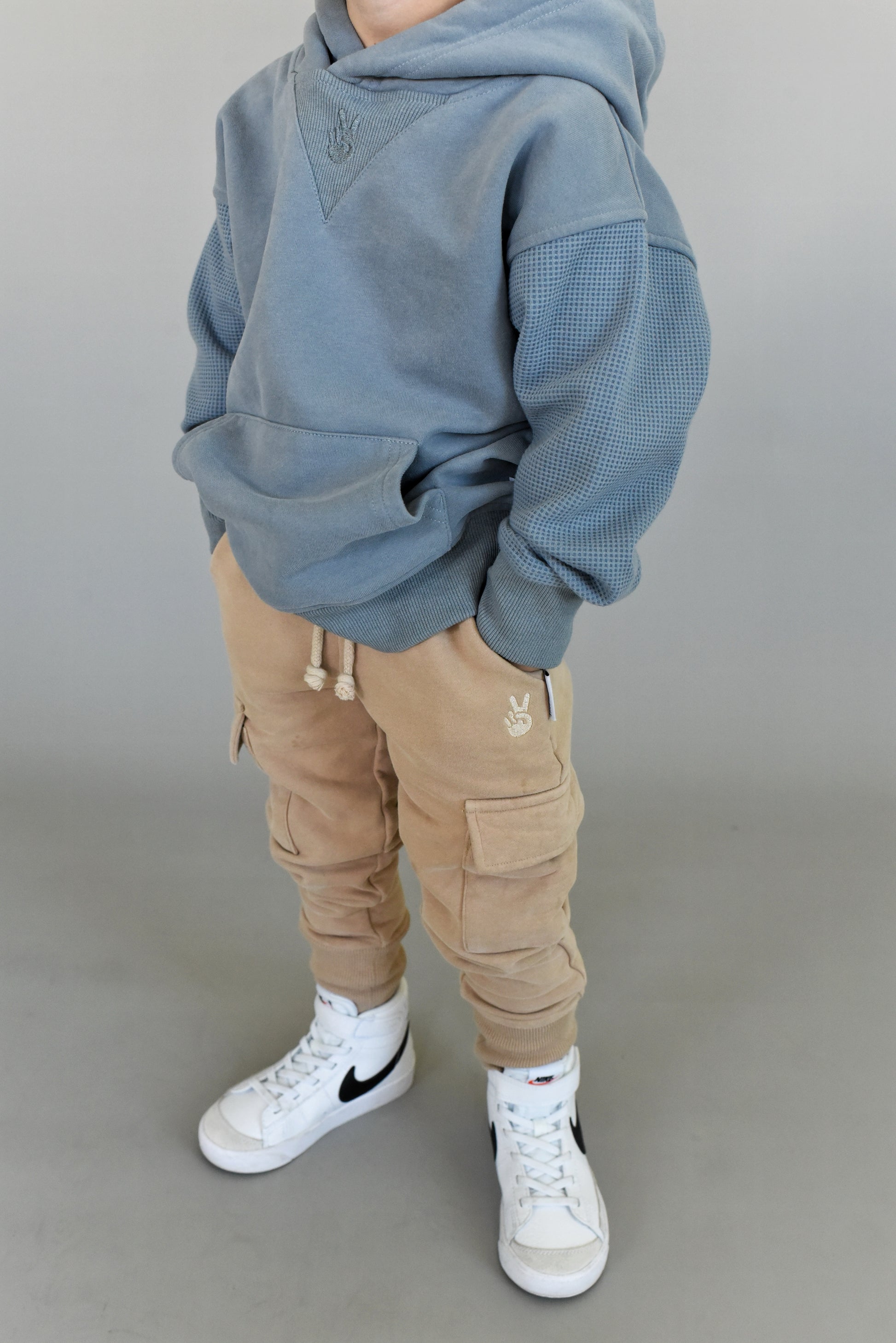 This hoodie has the sickest details: ribbed cuffs, waffle sleeves, fleece bodice, and a ribbed chest piece. A hoodie like this is unique to Little Wedgies.. you won't find it anywhere else! It's also one of the softest hoodies you'll ever own.